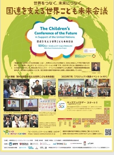 2024年3月24日、ESG-IRECの一木広治招へい教授が代表理事を務める一般財団法人ピースコミュニケーション財団の主催で国連公認事業「第4回国連を支える世界こども未来会議」が東京都庁の大会議場にて行われ、全国から参加した小学生18か国82名がSDGs達成目標年の2030年に向けて気候変動(SDG13)と平和(SDG16)について活発に議論した。会場には、小池百合子東京都知事やロベルト・べネスUNICE東京事務所代表、アーティストでUNHCR(国連難民高等弁務官事務所)親善大使のMIYAVIらも参加し、日本語と英語でプレゼンテーションをするこどもたちを応援した。今回のイベントは、東京都が共催し、こども家庭庁、外務省、内閣官房国際博覧会推進本部が後援している。